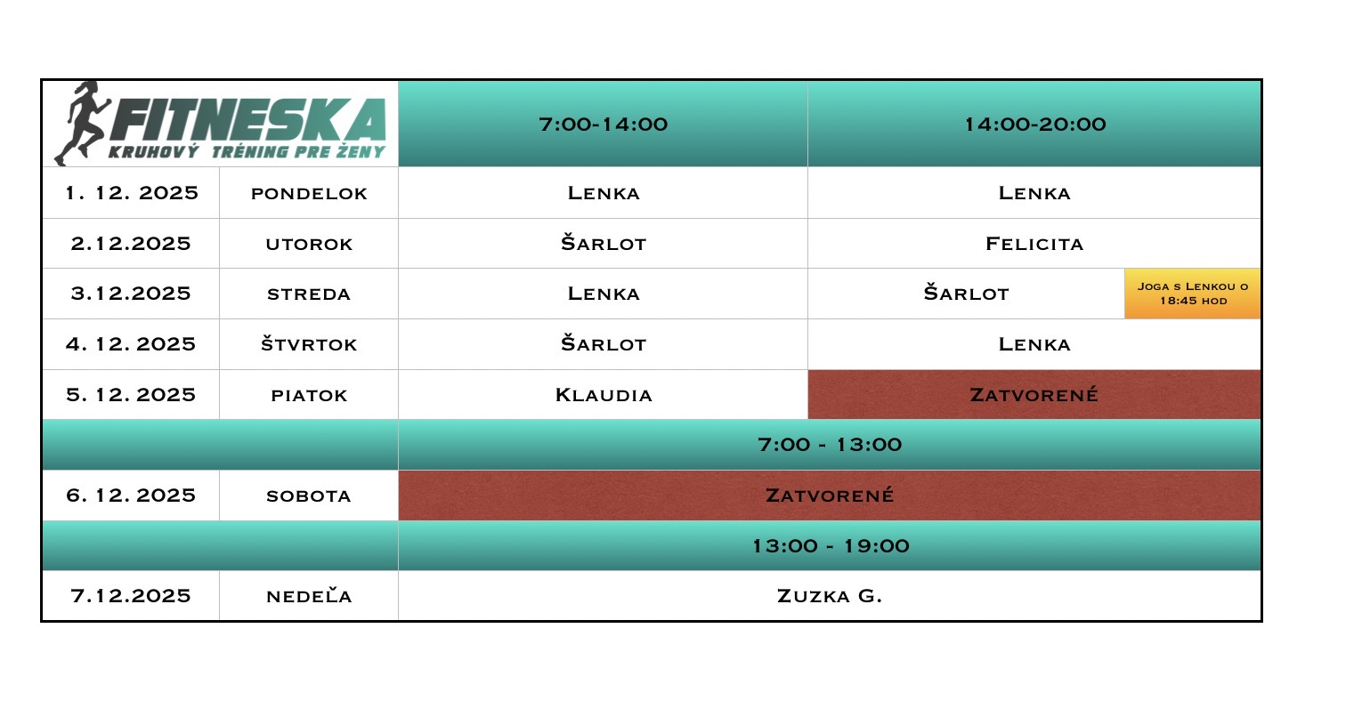 📅 SOBOTA (7. 12.) – ZATVORENÉ