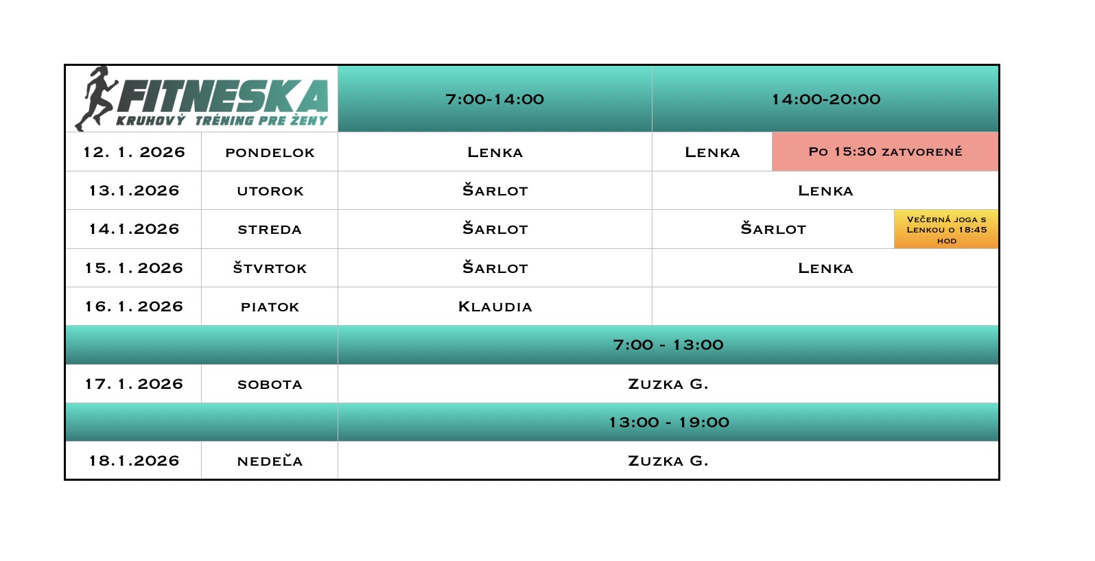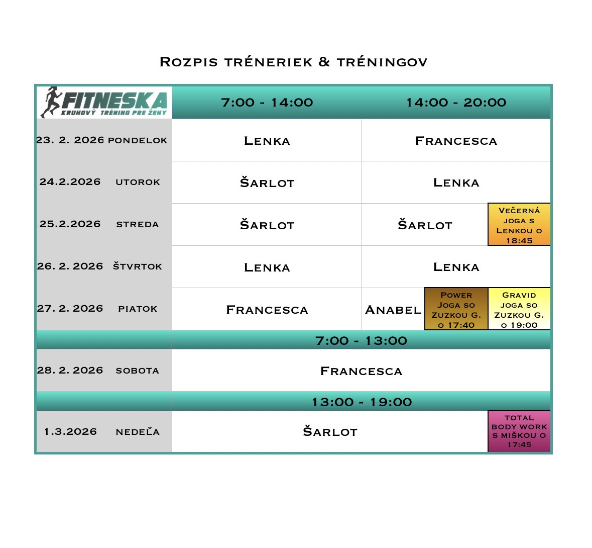 ROZPIS NA TENTO TÝŽDEŇ