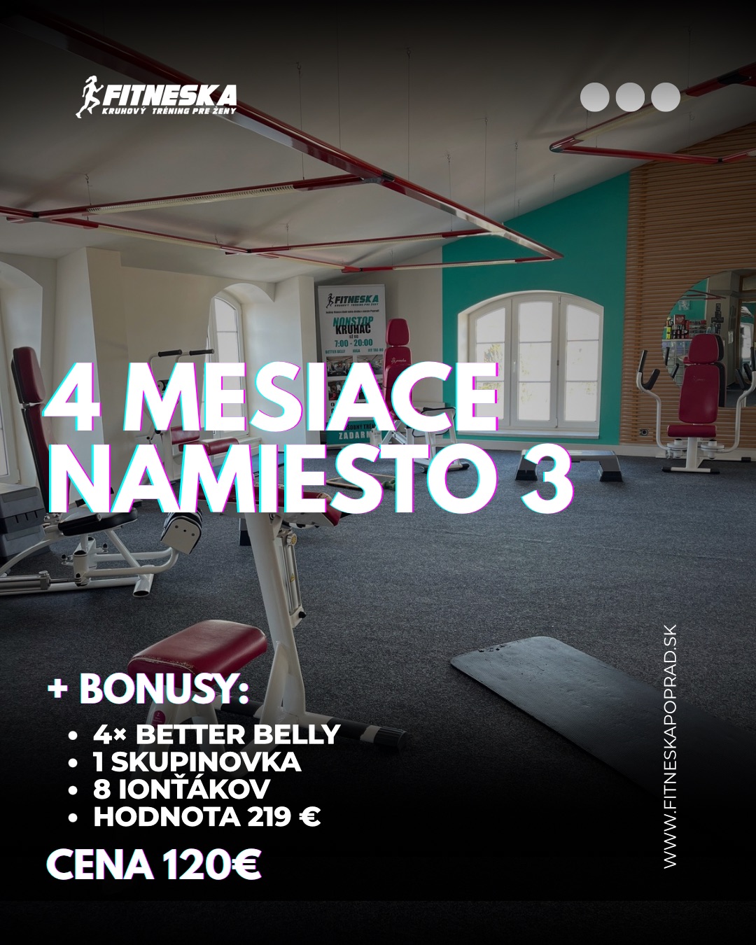 ✨ Získaj 4-mesačný transformačný balík v hodnote 219 € teraz za 120 € a staň sa Fitneskou. ✨